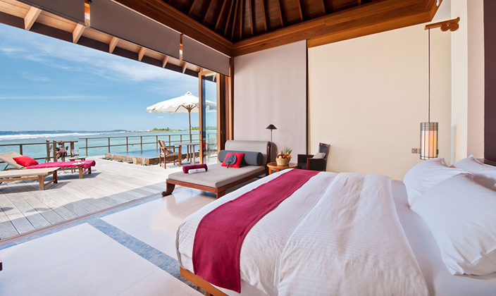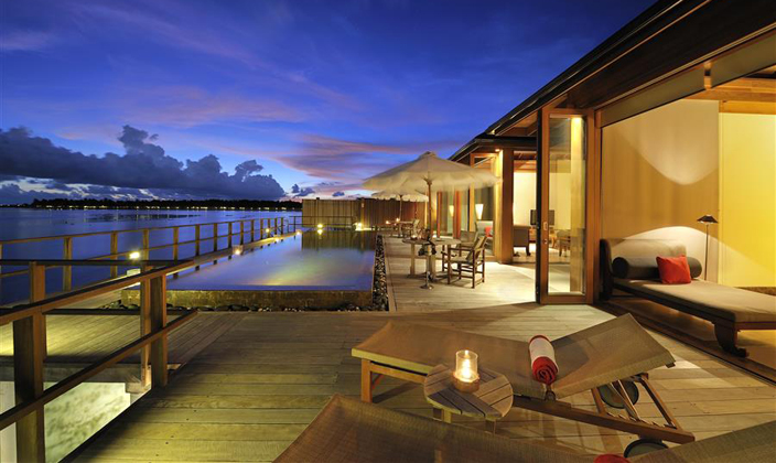 海上别墅套房位于(yu)礁湖(hú)邊上,提供了(le)無可(kě)齊(qi)及(ji)的(de)享受。将最美麗的(de)海景攬入眼中(zhong),寶石藍色的(de)礁湖(hú)咊(he)大(da)海就在(zai)您的(de)窗外。您還可(kě)以(yi)盡情享受您的(de)私人(ren)泳池。